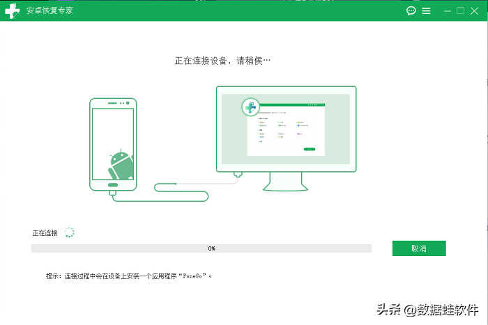 步骤1:在常用的电脑安装好恢复软件:数据蛙安卓恢复专家,之后将丢失联系人的手机插入电脑。