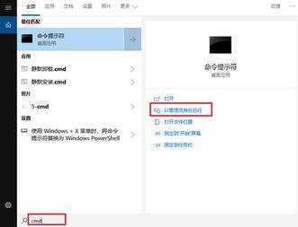1、【Win+Q】调出搜索,输入cmd,以管理员身份运行。