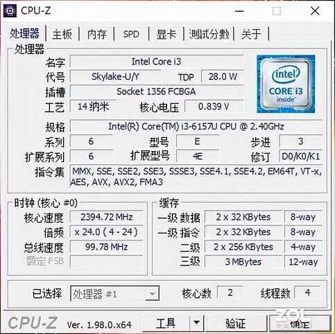 中柏EZBook X5搭载了英特尔第六代酷睿i3-6157U处理器,是的,是六代i3处理器,双核心四线程,主频2.4GHz,3MB三缓,TDP 28W,性能表现则会更好一些。