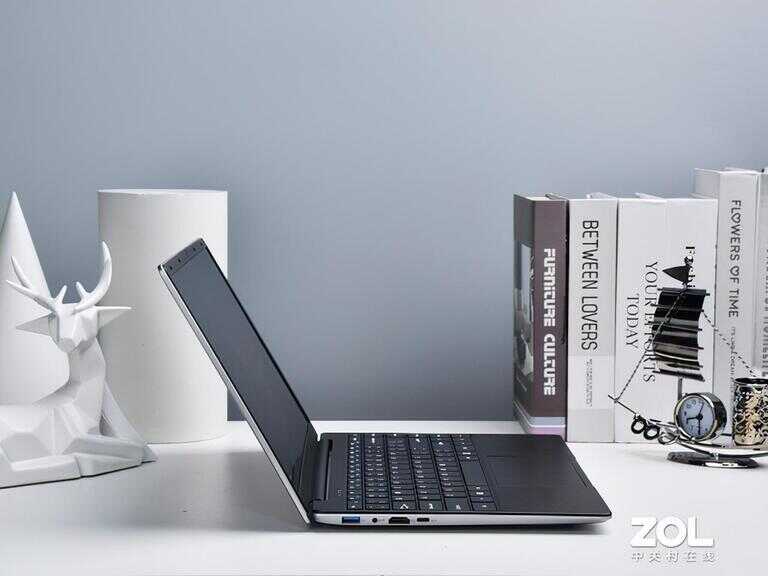 中柏EZBook X5的A/D为深空灰色,没有过多的线条修饰,外观简洁低调,其中A面仅有一个中柏的图形LOGO, 比较符合在办公或者学习场景下的使用。