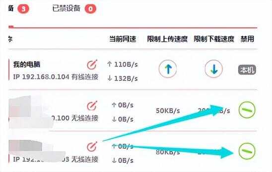 这个时候,咱们看到了不熟悉的联网设备,一般在右侧,有禁用的按钮,勾选即可,蹭wifi的人就无法继续使用了。