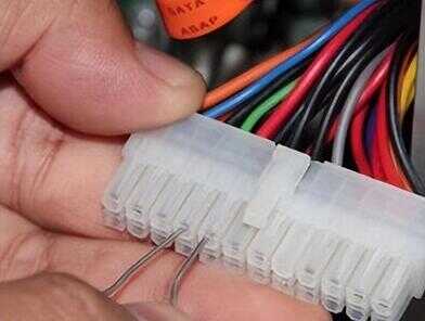 2、拆下电源后要找到“PS-ON”里面颜色绿色的线,再找到另一条黑色的线然后把它们连接起来,如果风扇还是不会转,那可能就是电源出问题没有办法供电了。