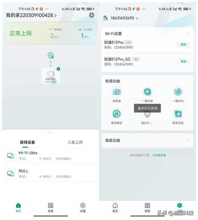 配置成功之后可以通过锐捷星耀APP绑定放大器进行日常的管理操作,功能相当丰富,甚至可以单独设置指示灯的开关,避免放置在卧室时影响睡眠。