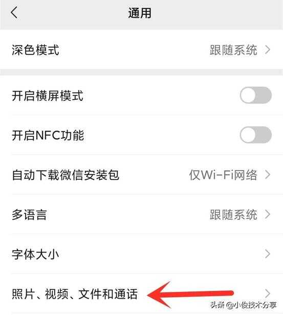 在【通用】页中可以看到有一个【照片、视频、文件和通话】的选项