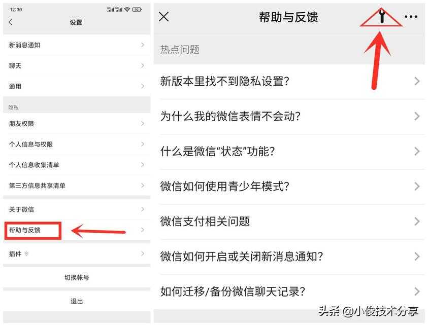 我们打开微信设置,找到【帮助与反馈】,在帮助与反馈中点击右上方的图标