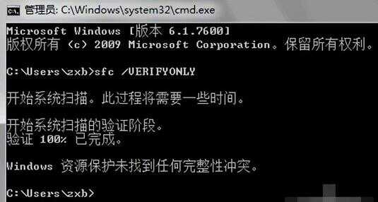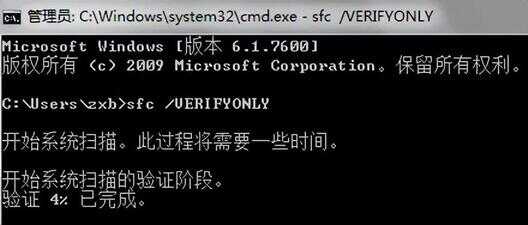 /VERIFYONLY,扫描所有系统文件的完整性和正确性。由于系统文件很多,验证需要一点时间,请耐心等待。