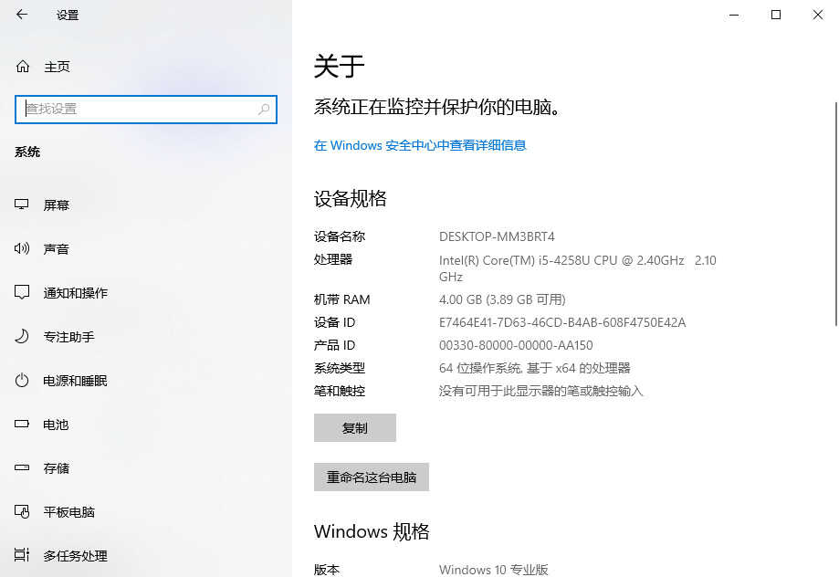 3、进入之后即可看到电脑的系统、处理器、内存等信息。