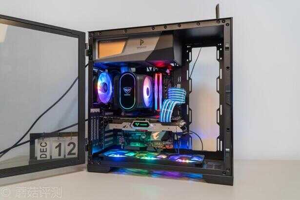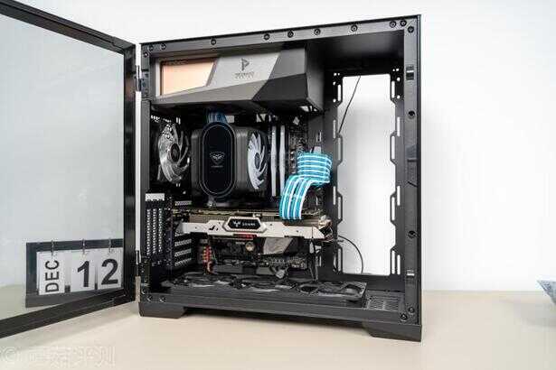 ▼装好之后的效果,显卡的侧面颜值确实可以。另外,安钛克这款冰钻P120,显卡固定位置偏下,下面可以安装机箱风扇,这样就可以对显卡的散热进行特别的照顾,搭配显卡的风扇启停非常好用,待机情况下,显卡的核心温度也很低