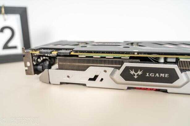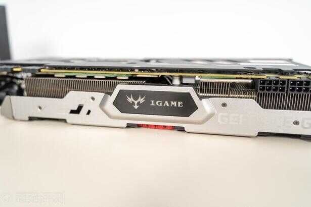 ▼显卡顶部,中间是IGAME的LOGO,然后两侧都是银色的铝合金,还挺漂亮的