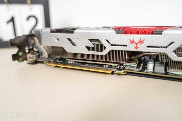 ▼个人说实话,不是太喜欢七彩虹显卡的外观设计,但是上手之后,却感觉其质感很不错。显卡正面有三把风扇,黑色的,风扇罩整体是银色的,中间点缀一些红色的元素,看起来挺漂亮的