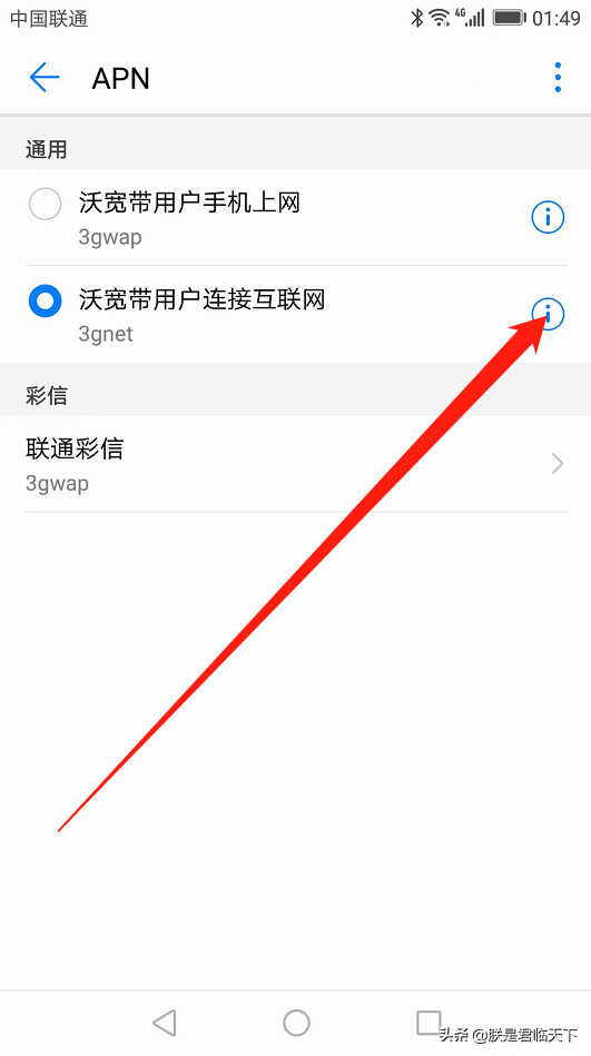 联通卡如何进入这里就不再赘述,直接看文字分进入:以小君华为手机为例,打开设置=》移动网络=》移动数据=》接入点名称(APN)=>APN=>沃宽带用户连接互联网=>,参考图片直接看怎么修改方法即可——