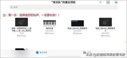 步骤3:进入到库乐队里面后则可以看到下载好的铃声,然后长按下载好的铃声后会弹出新界面;