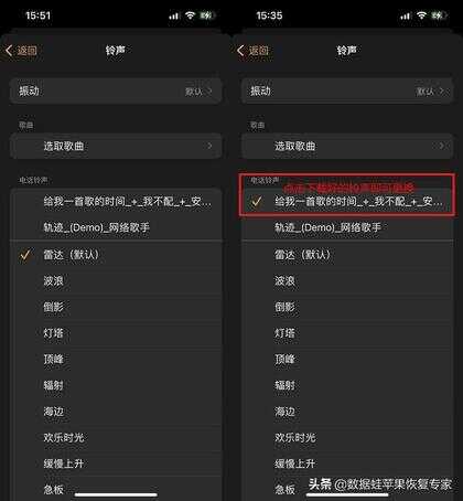 步骤7:然后我们再回到【闹钟】的界面,可以发现下载的铃声就已经在选项里面了,勾选后则可以完成铃声的更换设置。