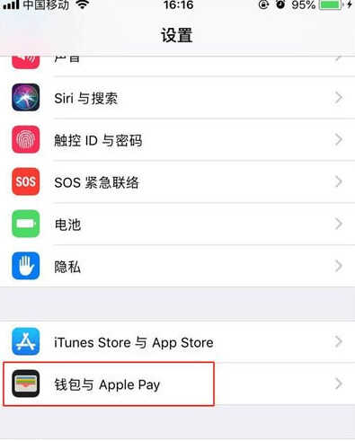 2、进入设置页面之后,选择【钱包与Apple Pay】,点击进入;