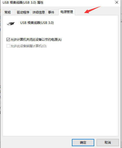 6.打开属性窗口后,切换到电源管理界面,删除选项以允许计算机关闭下面的此设备以节省电源,然后单击“确定”。