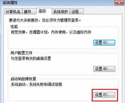 2、将界面切换到高级栏,点击启动和故障恢复设置按钮,如下图所示: