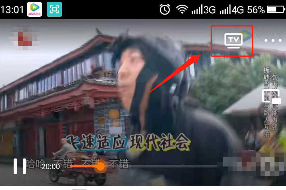 打开支持投屏的某一款软件,然后选择想要投屏观看的内容,如果内容支持投屏,那么内容的左上角会显示“TV”字样,点击它。如下图: