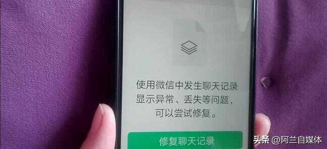 我们把它点一下,立刻下方就出来了“修复聊天记录”,我们把它点开,下方也有提示,使用微信中发生聊天记录显示异常丢失等问题,可以尝试修复。我们点下方的“修复聊天记录”,这样系统就自动修复显示异常丢失的聊天记录啦!
