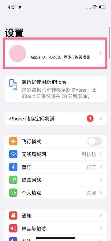 1、选择手机中的设置,点击顶部的【Apple ID】。