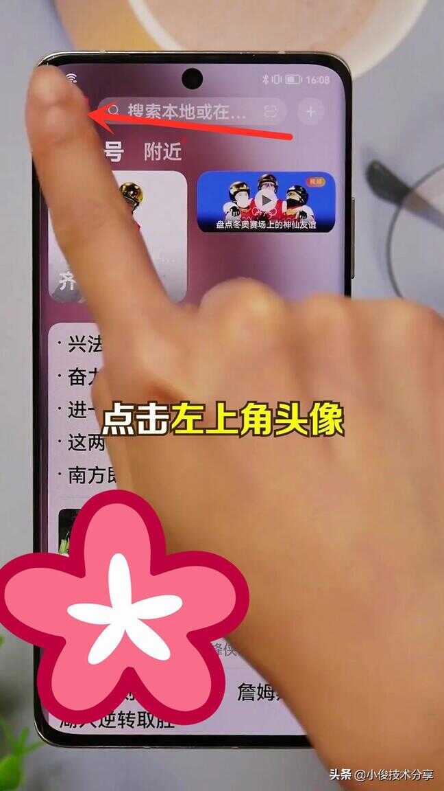 首先我们把手指移到屏幕上方往下滑动,然后在搜索框输入【广告】