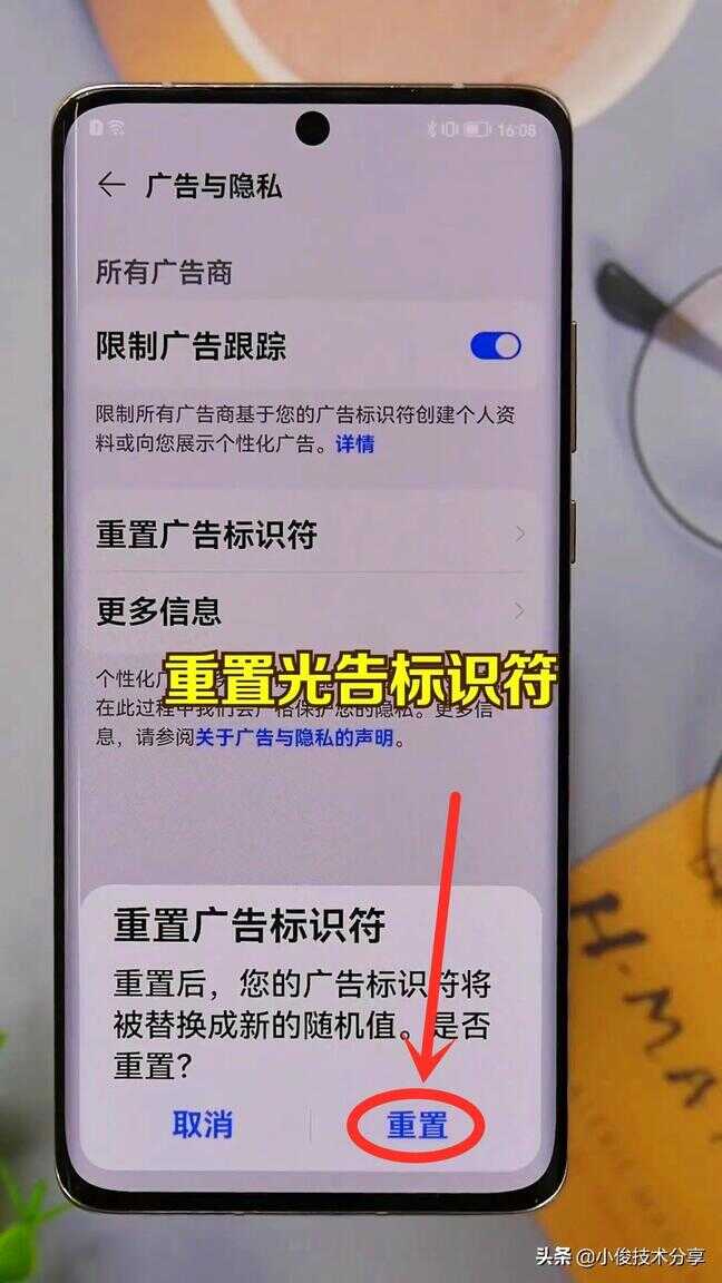 打开这个开关之后,再次往下点击【重置广告标识符】,我们直接将它重置!
