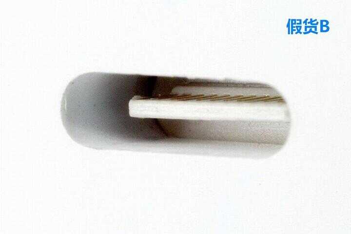 假货 B 接缝处理的跟苹果正品几乎一样,属于精仿工艺,普通人难以辨认真伪。
