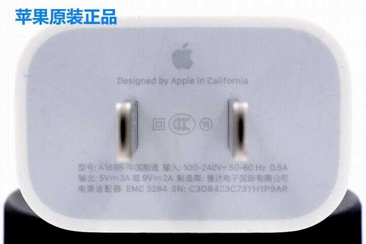 苹果充电器壳体底部铭牌参数中,SN 就是序列号。每个苹果的配件它都有全球唯一的序列号,序列号会标注在产品包装盒、产品外壳以及录入在充电器内部芯片中,这三个地方的序列号一致。图中画红线的就是该充电器系列号,SN:C3D8423C73YH1P9AR。