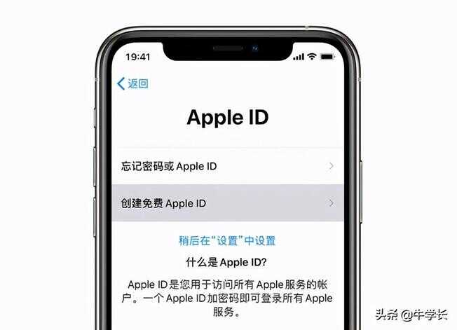 当购入一台新iPhone时,在开机设置时,会出现“Apple ID”界面,如果是在没有Apple ID的情况下,则可以直接点击“创建免费Apple ID”,再根据提示操作完成注册即可。