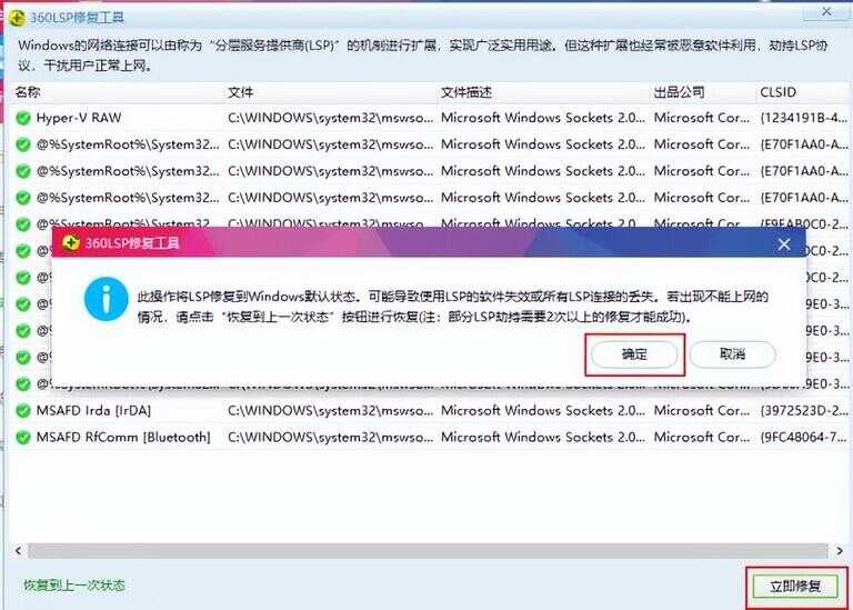 如果LSP修复后还不能上网,再使用一下工具里的断网急救箱。