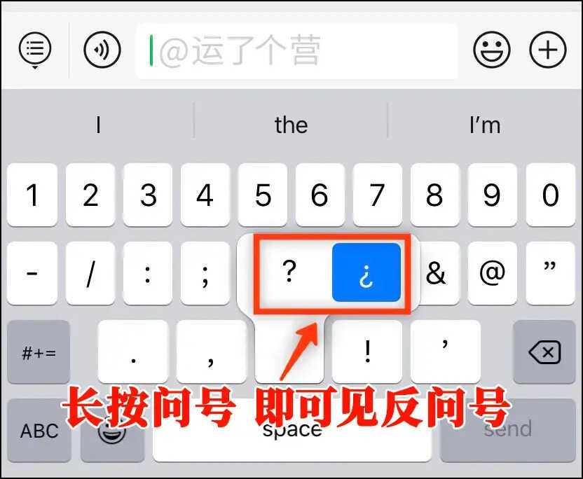 最后,长按问号按键,就可以看到这个反向的问号了,点击这个反向问号就可以发送出去了。