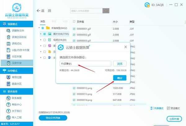 1.打开云骑士数据恢复软件(建议安装数据恢复软件时通过另外一台电脑将软件放到U盘里面,然后再安装到需要恢复的电脑上),根据需要选择恢复功能,这里建议使用深度恢复功能,因为它扫描更全面更深入。