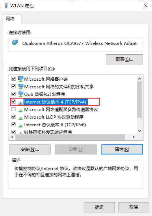 6. 在下方的项目中找到internet版本协议4,单击安装。