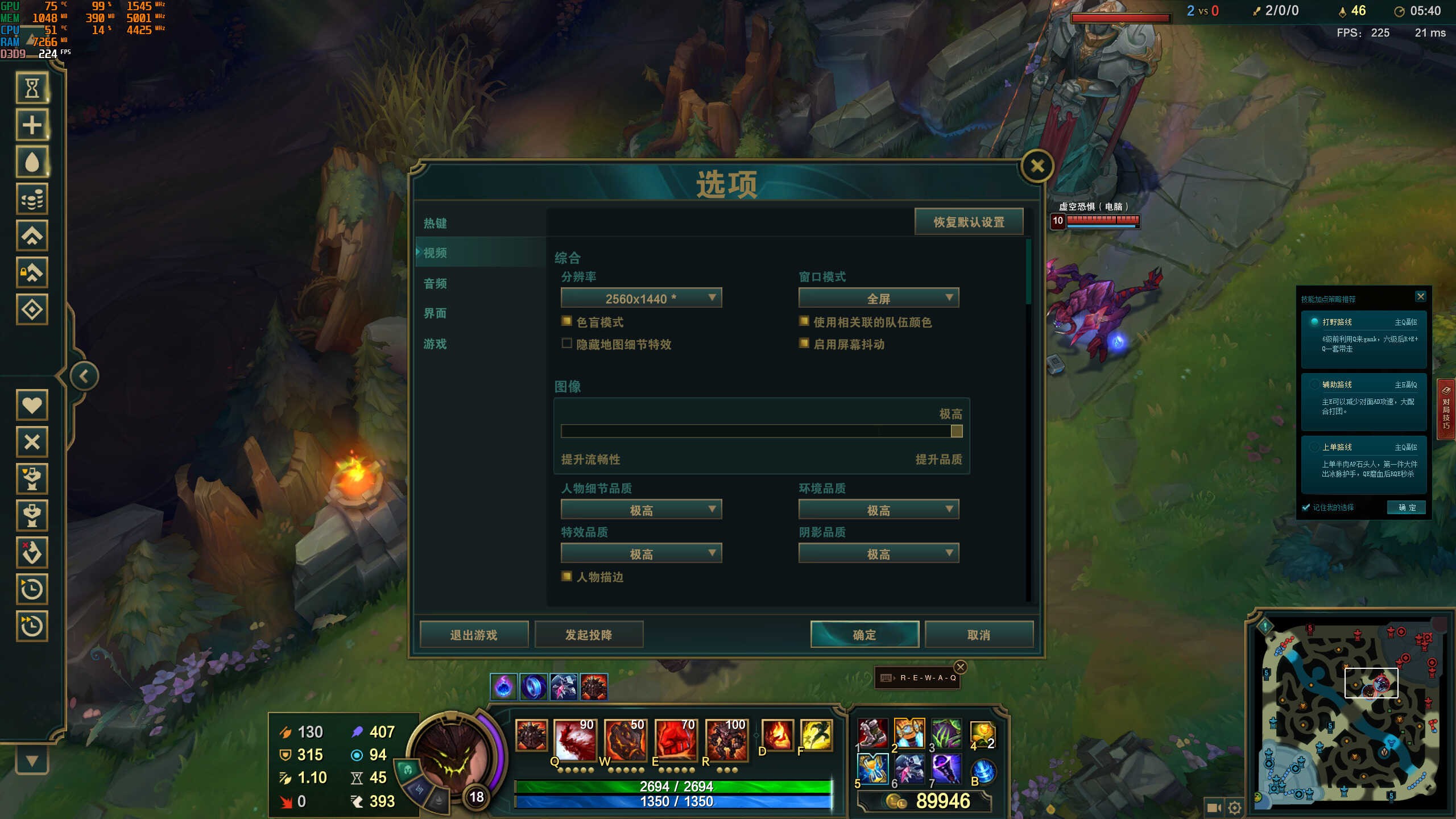 英雄联盟在2k全特效下帧数基本都在180帧以上,1080p帧数会高30帧左右。