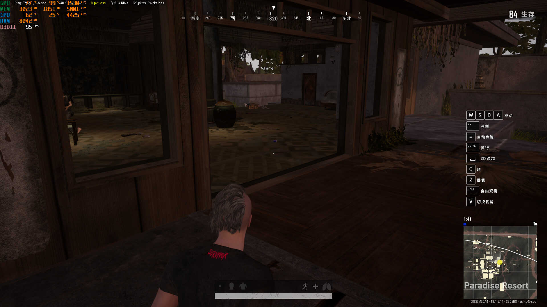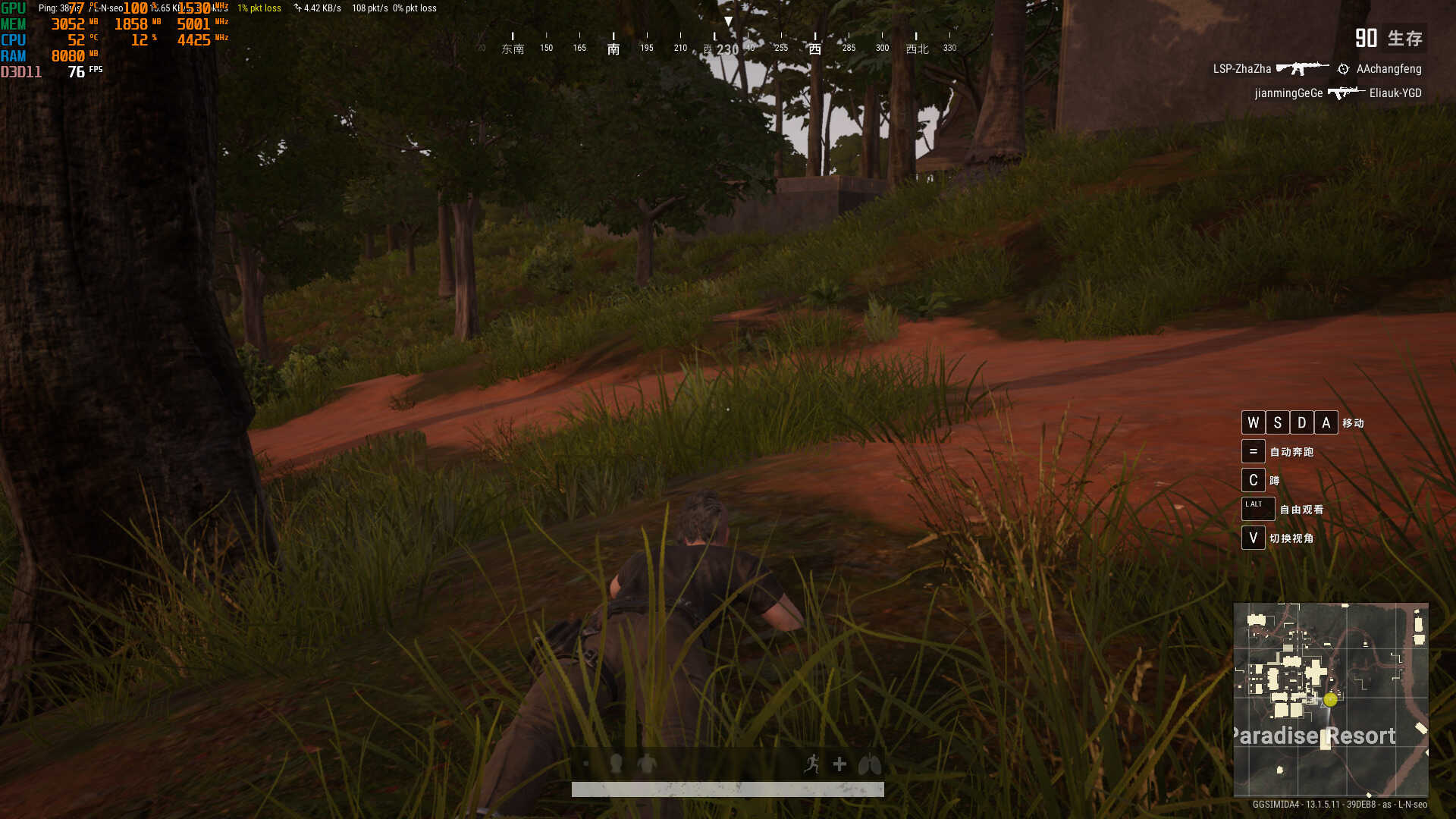 在绝地求生的帧数还算可以,但是绝地求生地图差距大,一般来说这张卡三极致下,帧数在70和95之间波动,这个帧数对3000左右的电脑应该算是不错了。