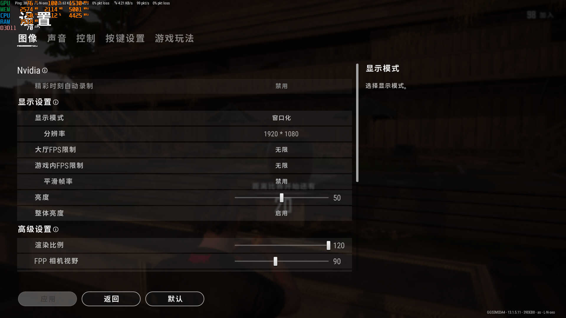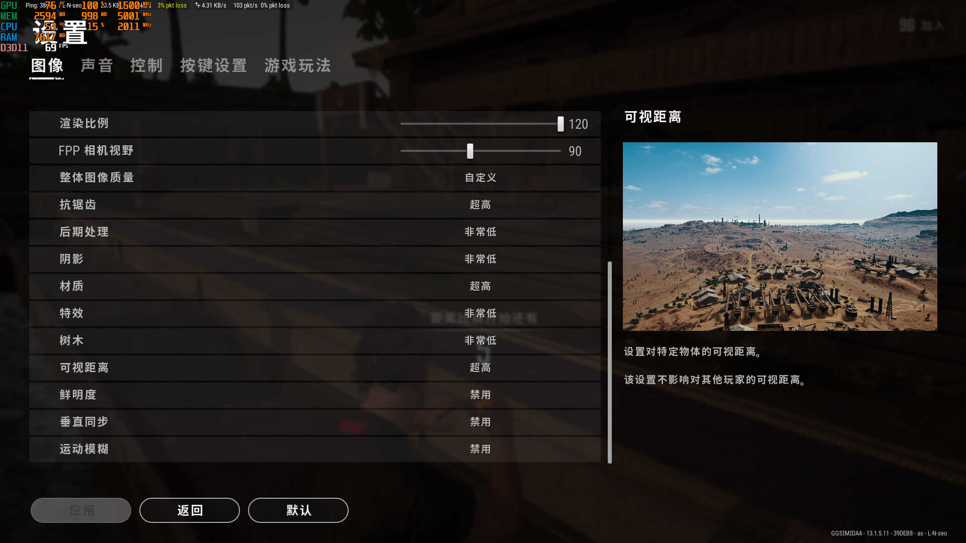 特效设置,1080p 三极致 渲染比例120