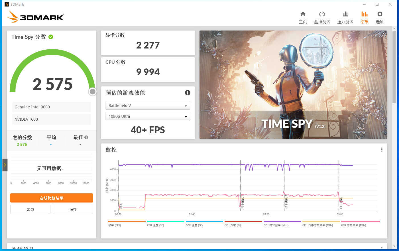 在3D MARK TIME SPY中,T600跑分是2277分。