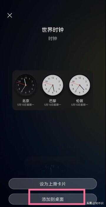 点亮手机桌面之后,在时钟应用上滑,点击【更多服务卡片】(操作如下图所示)。