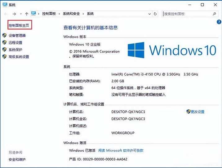 3、切换至了“系统”界面,找到“控制面板主页”并点击,如图所示: