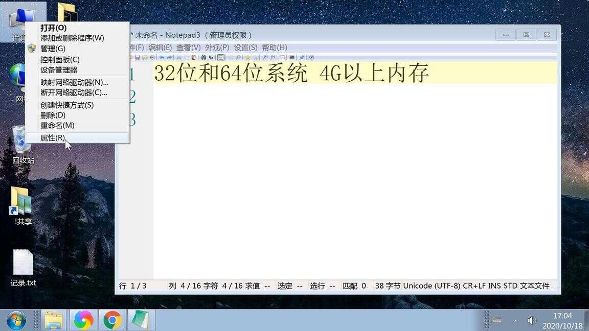 我们查看一下电脑的内存和系统,对着桌面计算机右键点属性。