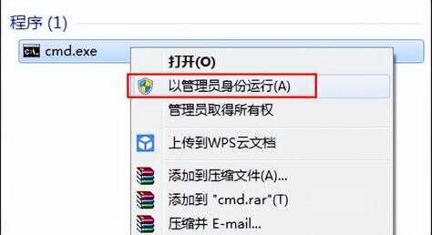 2、右击cmd.exe,选择“以管理员身份运行”,如下图所示: