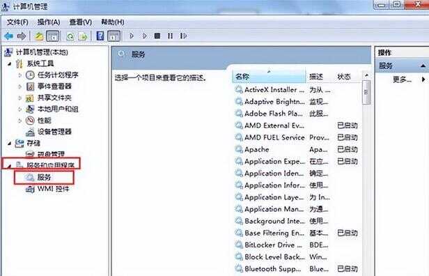 2、接着在计算机管理窗口中,依次点击“应用与服务-服务”选项,如下图所示:
