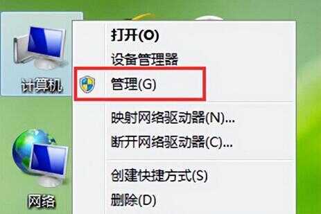 1、找到计算机图标,鼠标右键点击“管理”,如下图所示:
