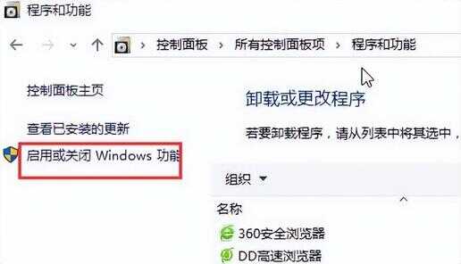 2、依次点击程序和功能-启用或关闭Windows功能,如下图所示: