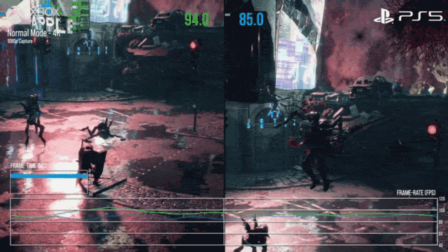 有趣的是在高帧数模式下,两台主机的表现出现了截然不同的结果。