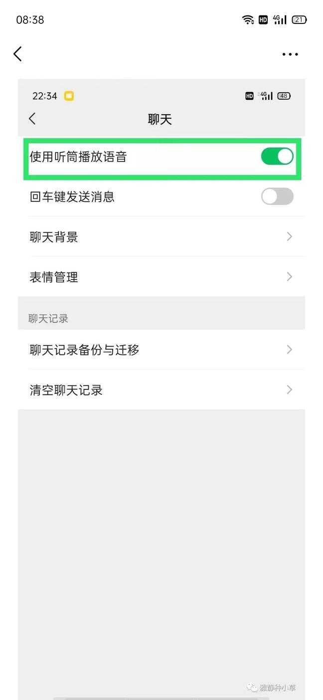 第四步,将“使用听筒播放语音”打开程绿色条显示