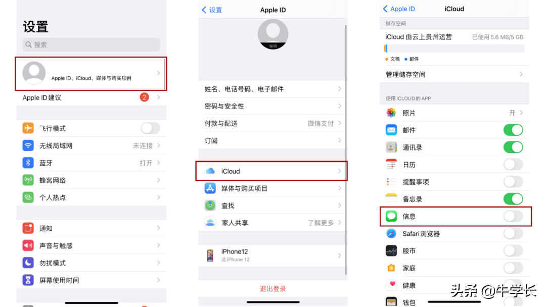 打开iPhone【设置】-【Apple ID】-【iCloud】,查看信息栏是否开启了同步。如果已开启,可重新登录iCloud或在网址登录iCloud进行找回。