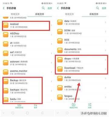 手机存储中的像“Android”、“backup”、“cache”、“download”“temp”等等这类文件夹是可以删除的,一些软件的缓存文件,倘若你没有一些重要的聊天数据和文件资料也是可以直接删除的,比如说:“Tencent”、“360”、“baidu”、“douyu”、“weishi”等等。