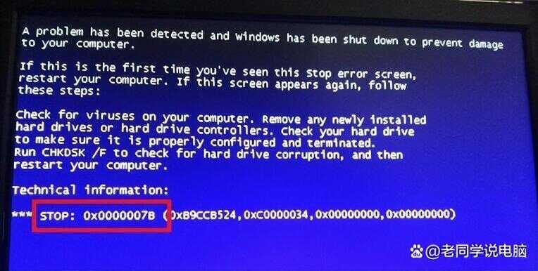 1.蓝屏代码:0x0000007B,可能是硬盘模式错误,可以调整硬盘模式,IDE和AHCI模式切换下。如果是系统引导错误,那就近PE系统修复系统引导。