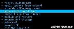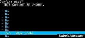 5、选择【wipe cache partition】(中文版的是:清空缓存),然后按开机键确认,再选择【yes - wipe cache】(是的 - 清空所有缓存)即可