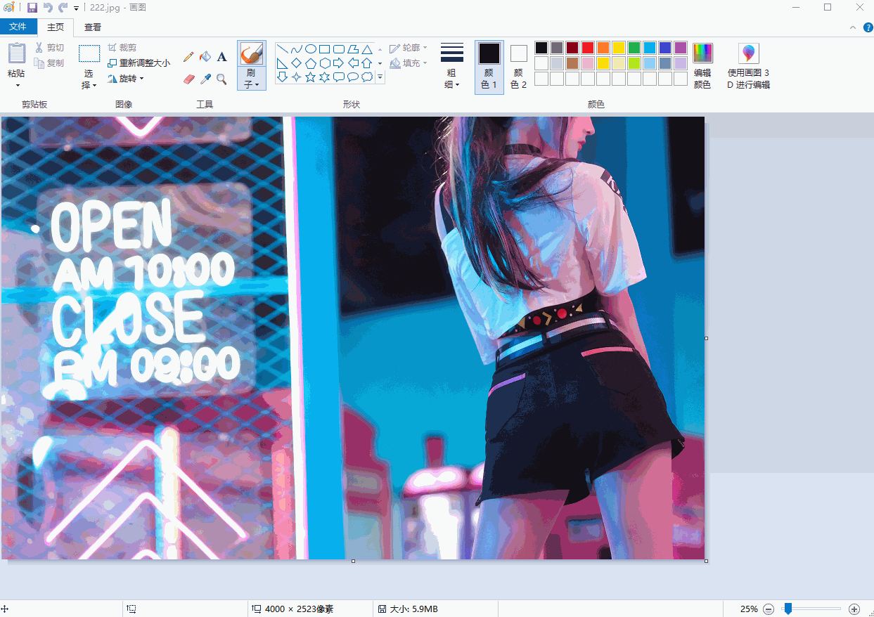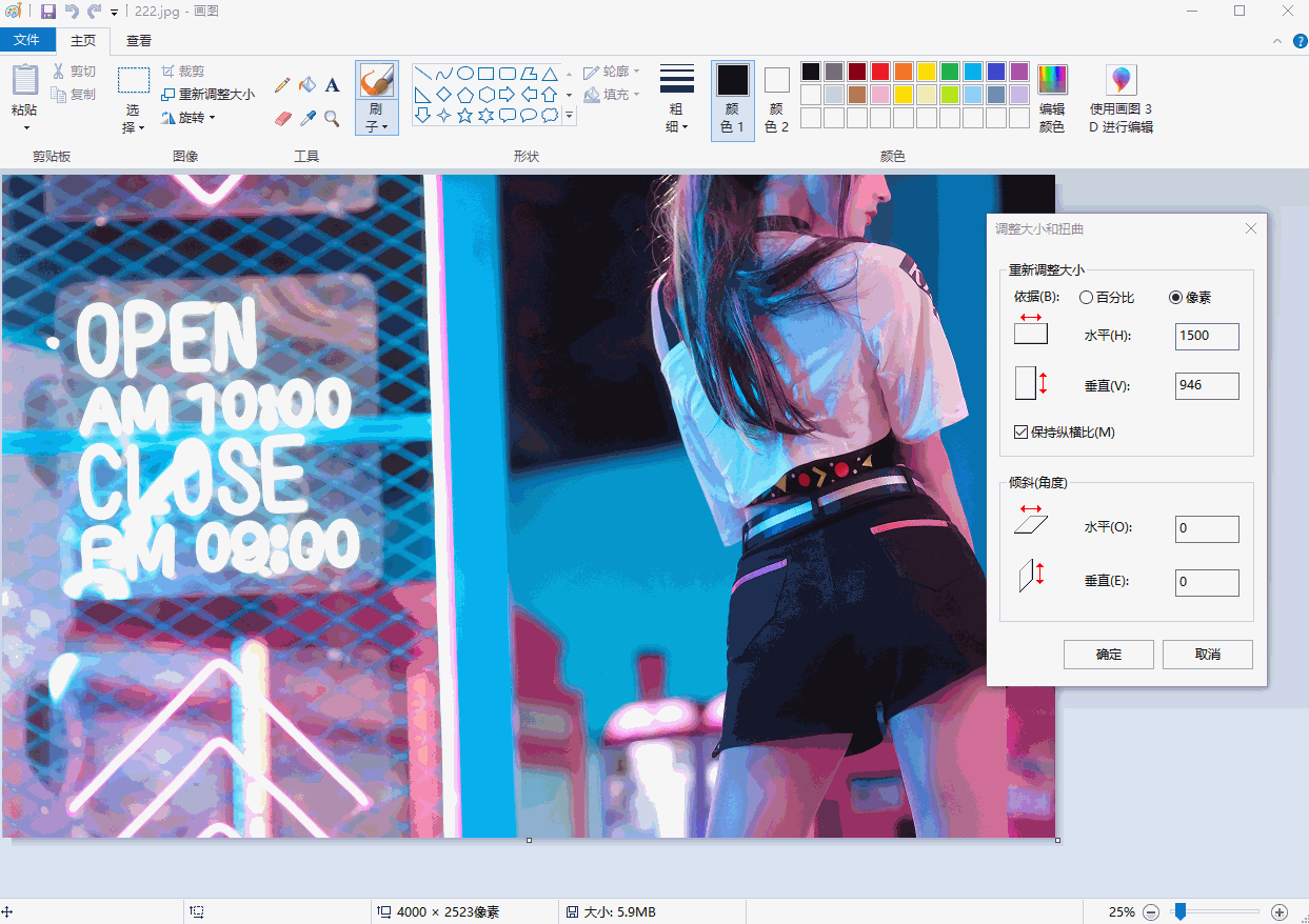 ④修改完成后点击【确定】,画图面板上显示的图片就变小了。最后按下【Ctrl+S】保存图片,关闭当前窗口,这张图片就被压缩了。